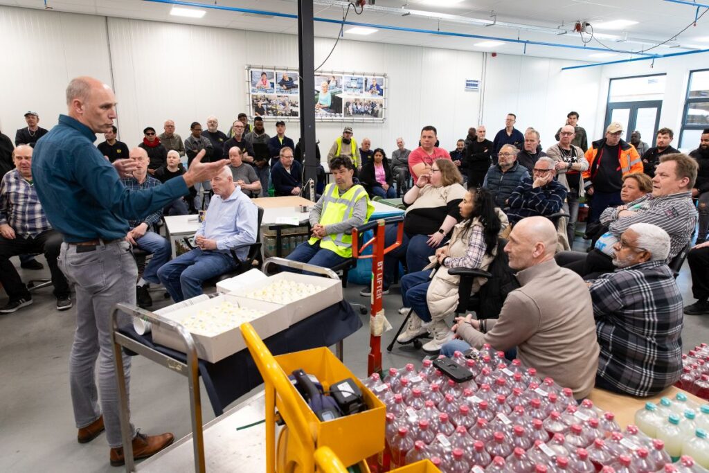 “Het was best een zware opdracht,” vertelt bedrijfsleider Productie Arjan Vos in zijn toespraak op de afdeling. “Ik ben er heel erg trots op en blij mee dat jullie het samen voor elkaar hebben gekregen. Jullie verdienen een groot compliment hiervoor. Dat geldt ook voor de collega’s van het magazijn die druk geweest zijn met het laden en lossen van alle pallets.”
